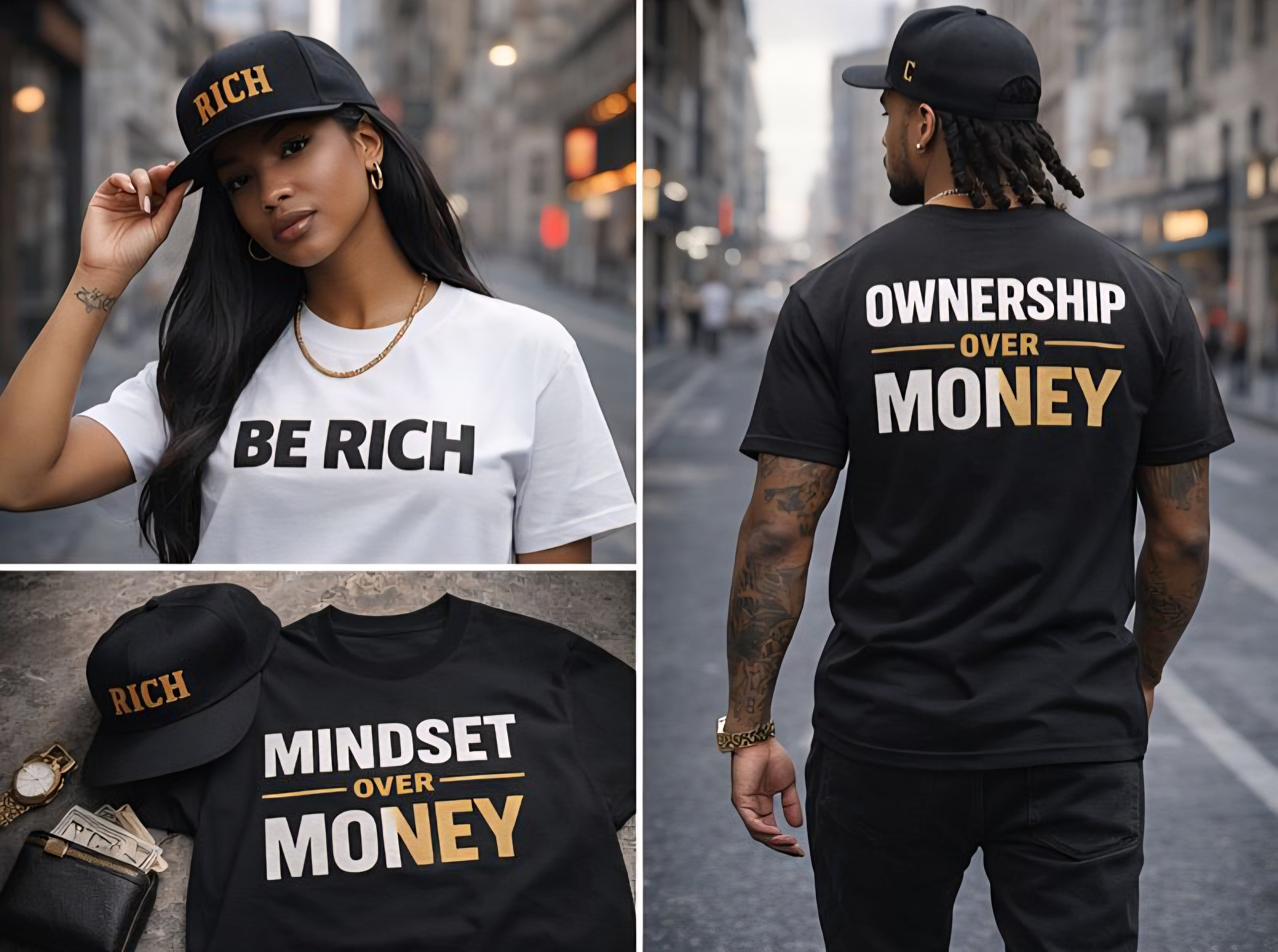 Every piece carries a message of mindset, ownership, and legacy. From bold tees and hoodies to premium hats and family sets, our apparel is built for people who think bigger, move with intention, and create lasting impact.